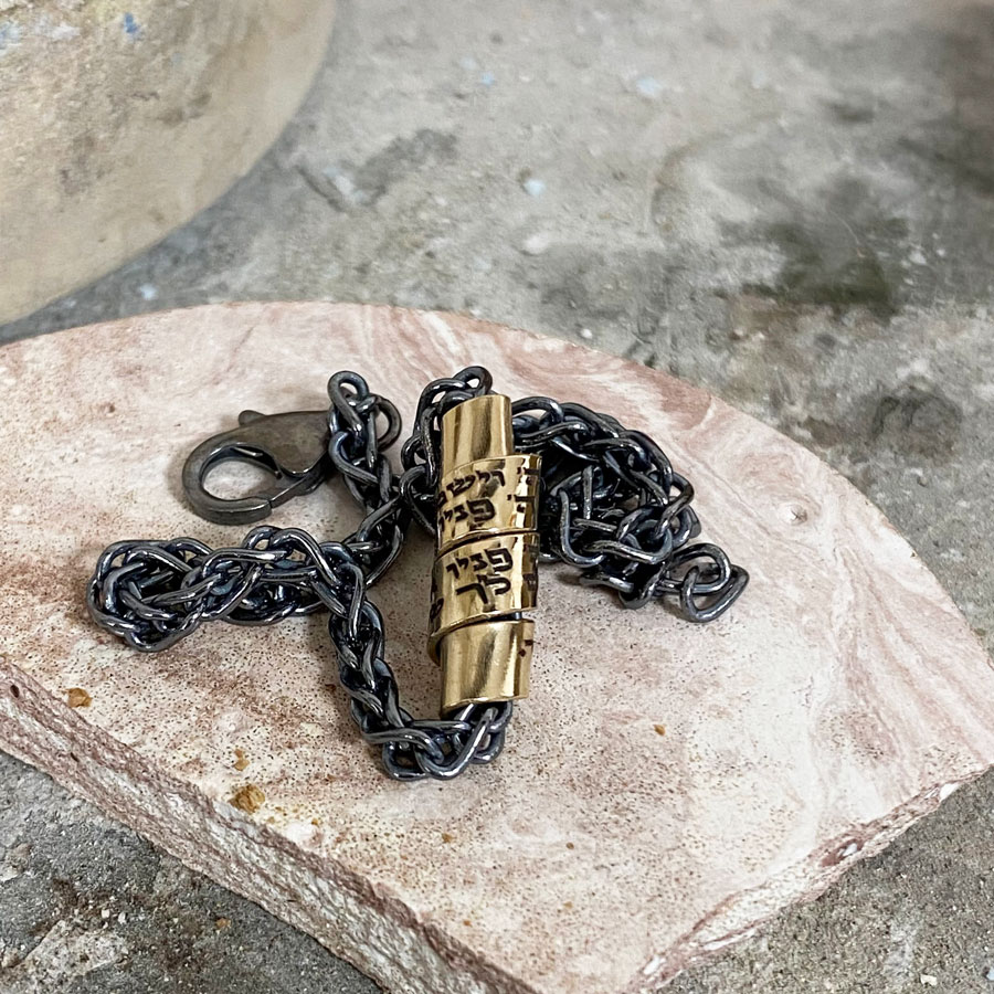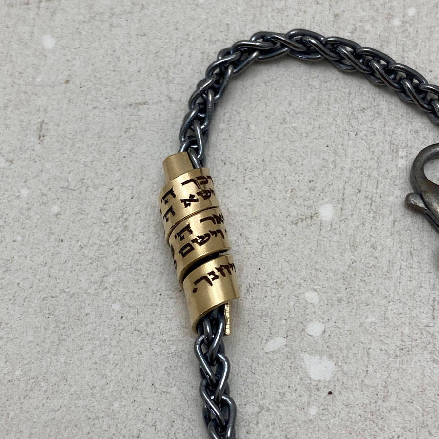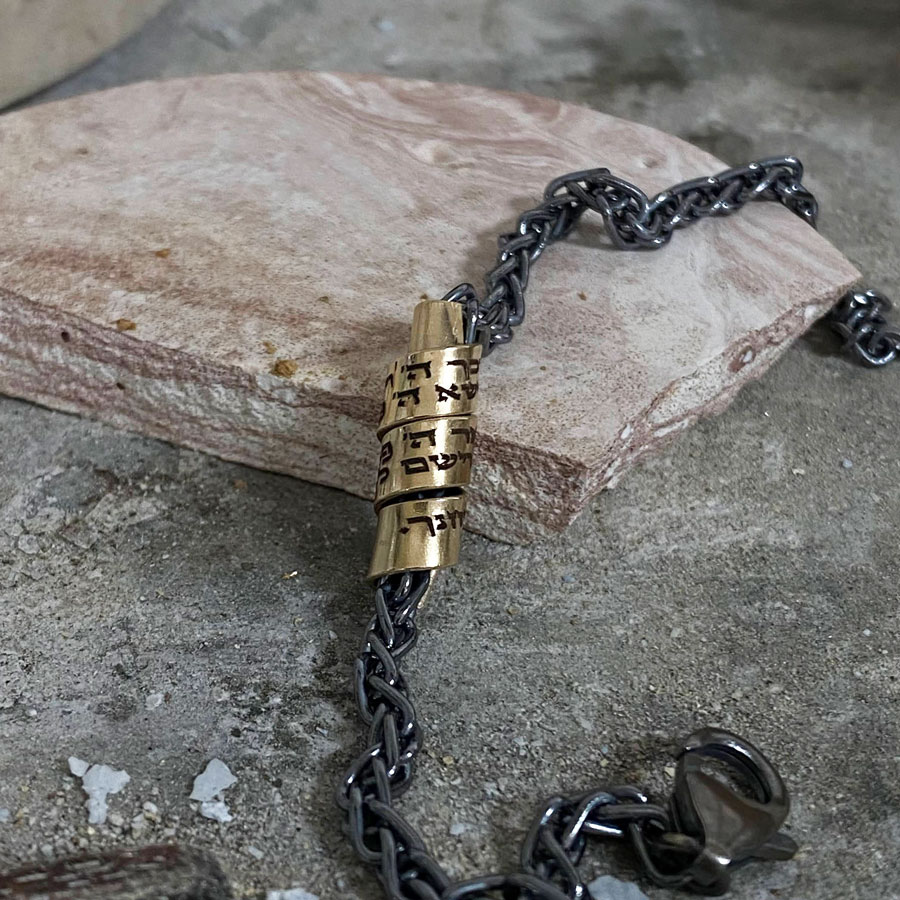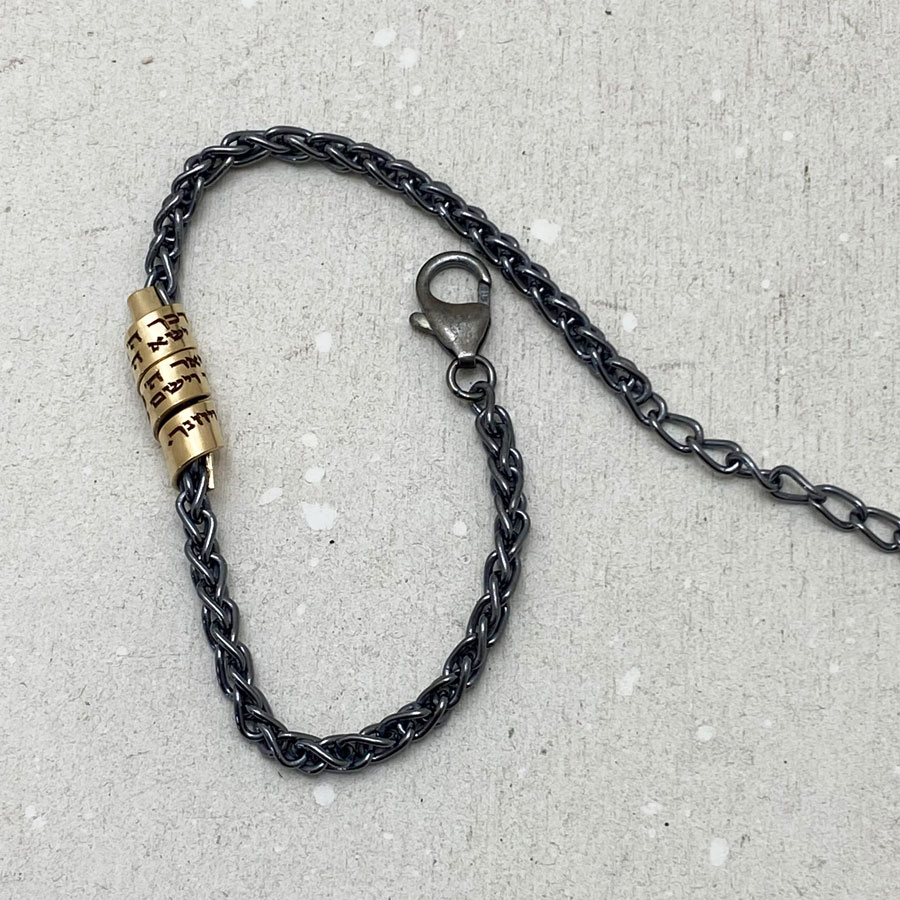 This effortlessly chic blackened silver bracelet features a gold-filled charm engraved with the Priestly Blessing.