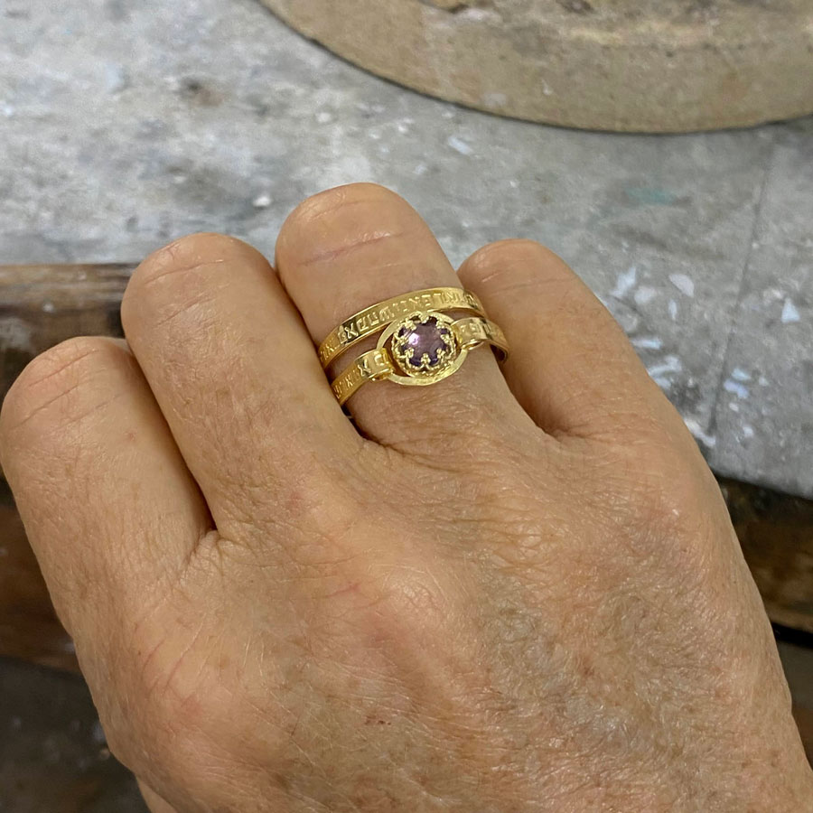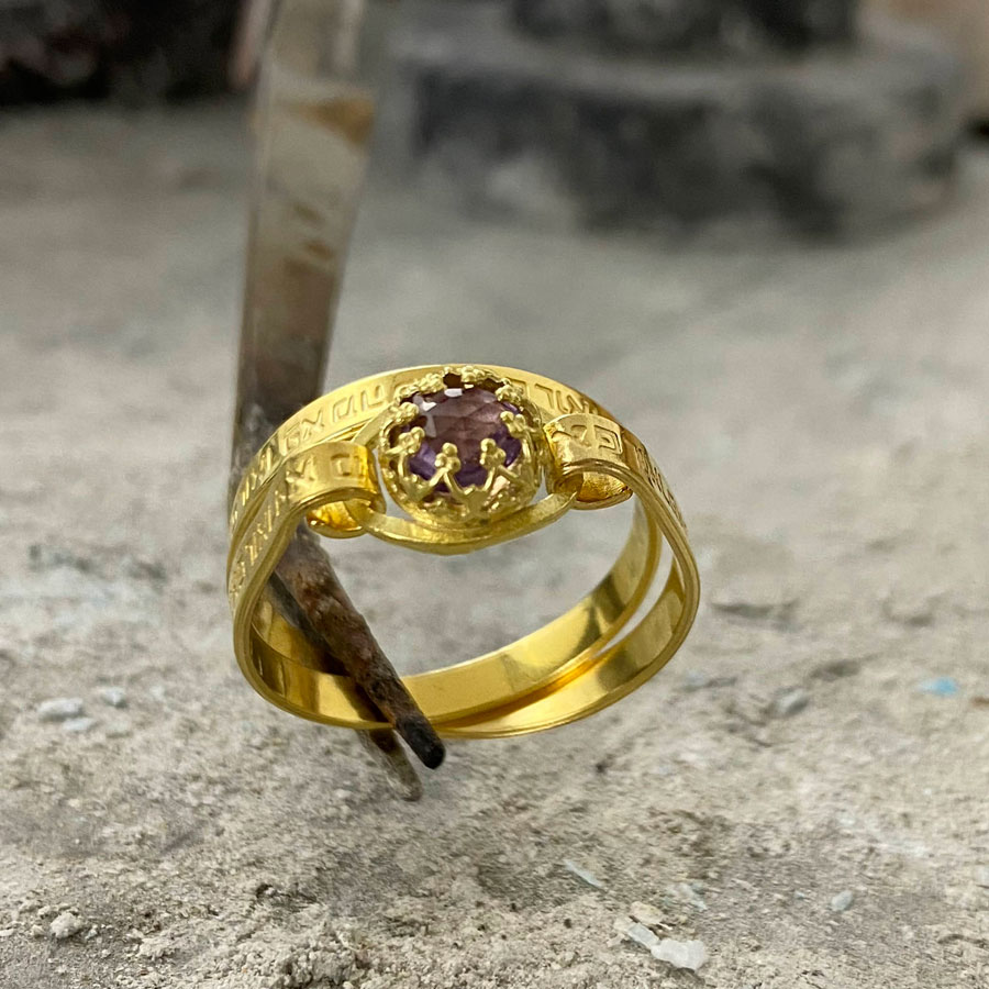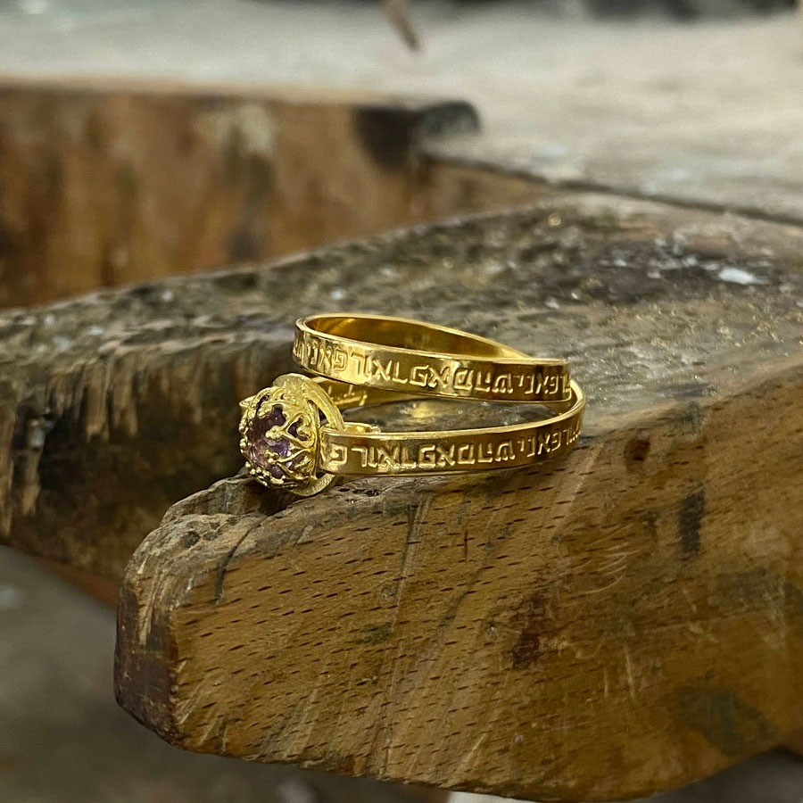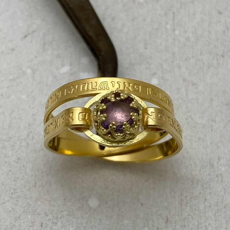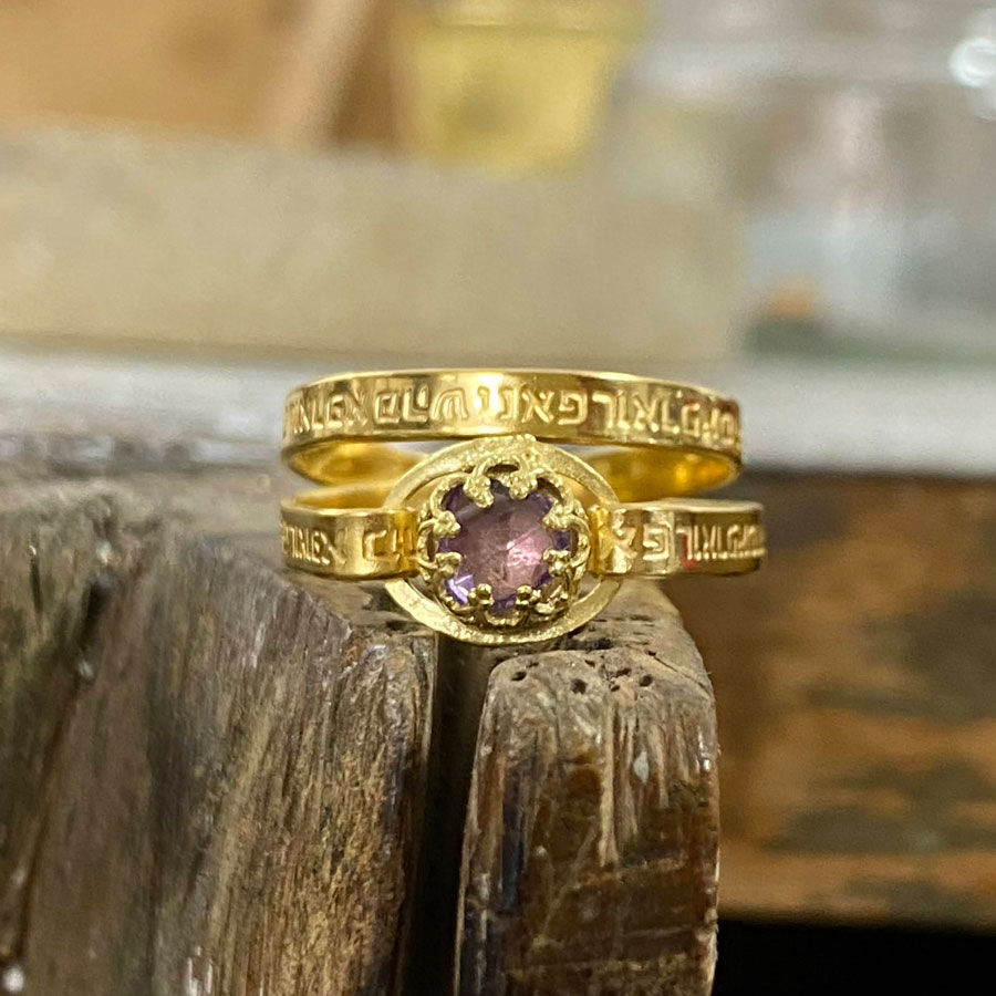 Home / Shop / Hebrew Rings / Kabbalah Hebrew Healing Engraved Verses Gold Filled Amethyst
