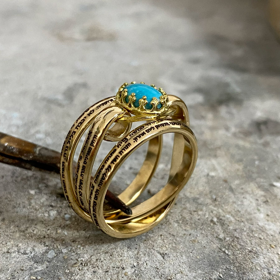 Home / Shop / Hebrew Rings / Hebrew Engraved Rings / Turquoise Woman of Valor Love Verses Hebrew Engraved Ring