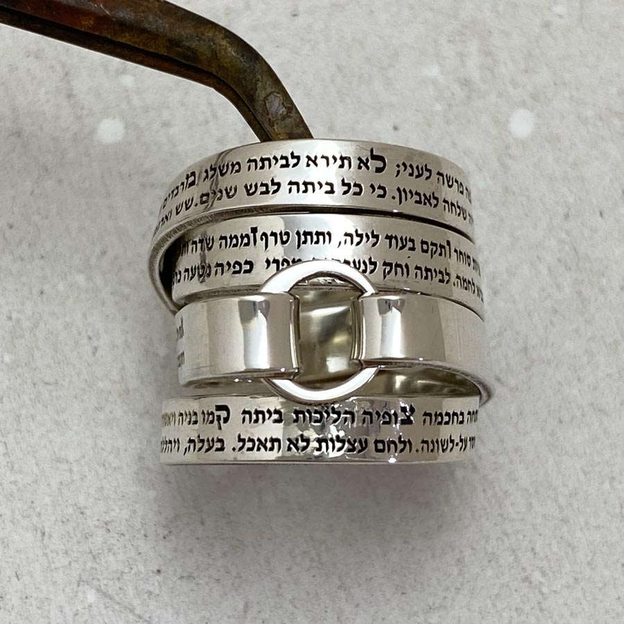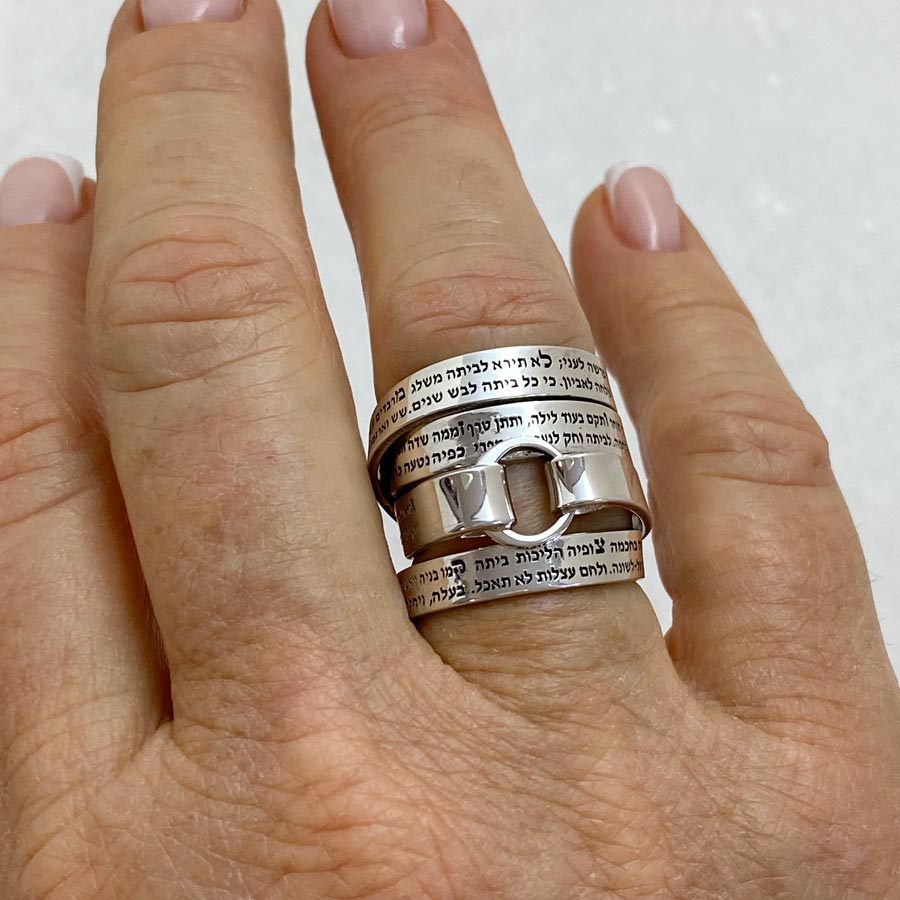 This captivating multiband sterling silver ring is a stunning testament to Jewish tradition’s timeless elegance and profound meaning.