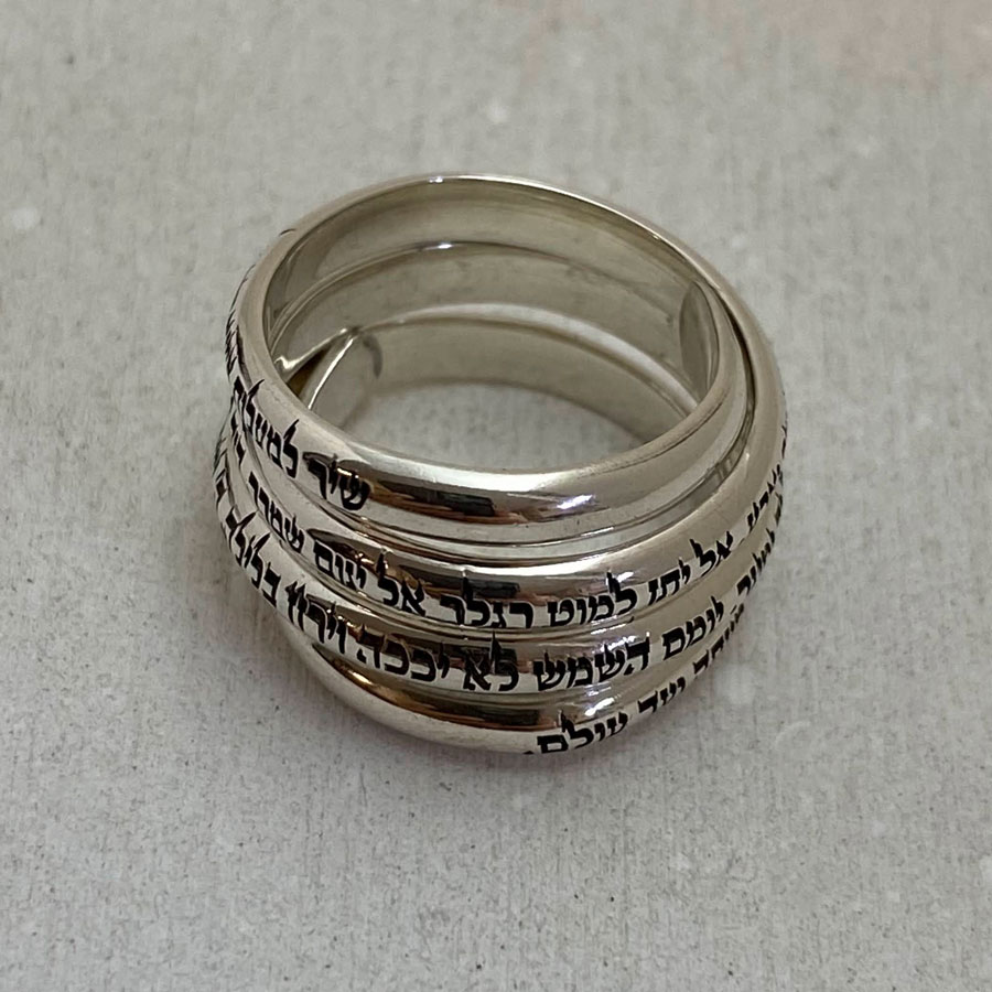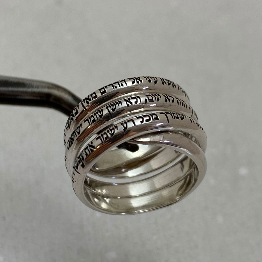 This elegant silver ring is engraved with the powerful Hebrew prayer Shir Lamaalot” (Psalm 121) — a timeless psalm of protection, faith, and divine guidance.