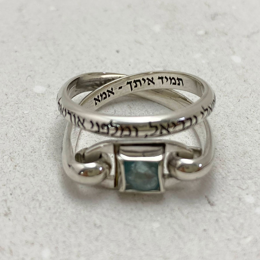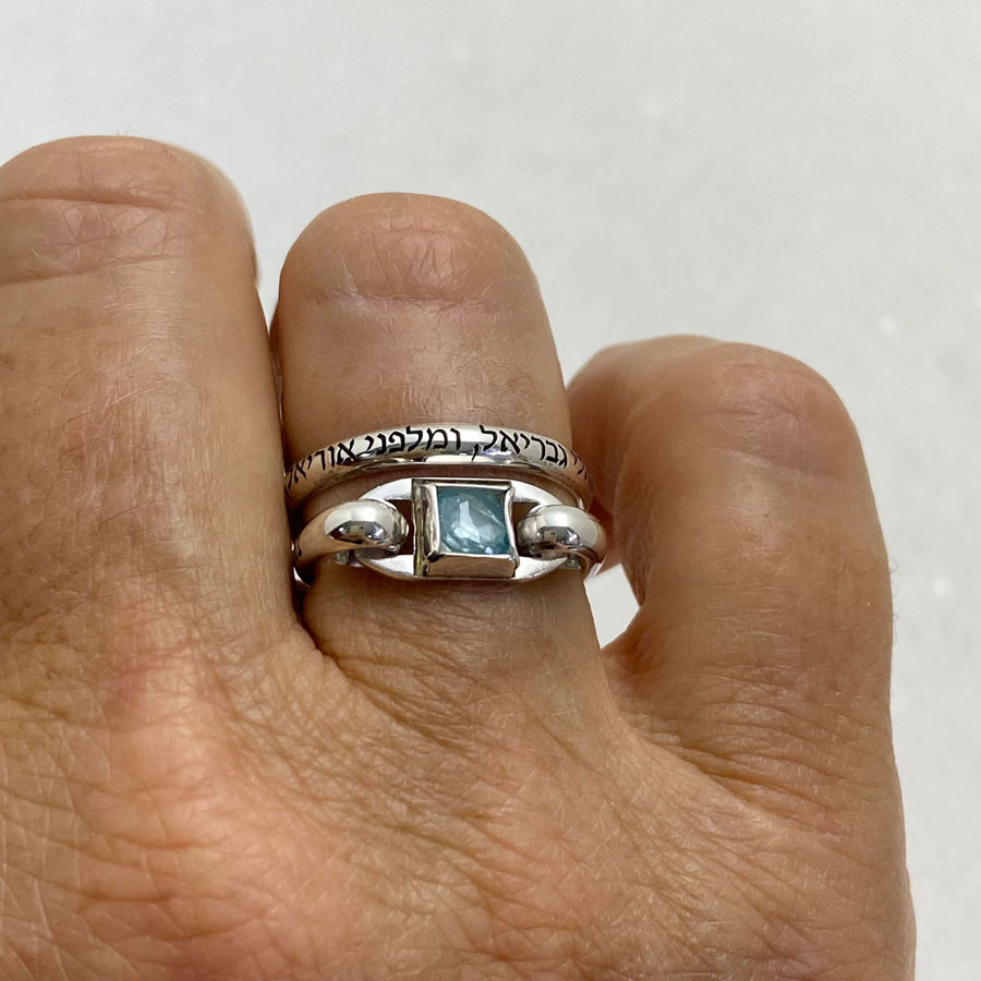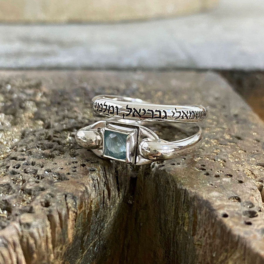 Home / Shop / Hebrew Rings / Silver Ring with Aquamarine and Hebrew Angel Blessing Engraving